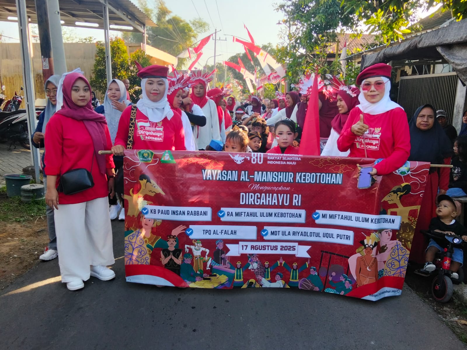Meta Description: Pawai Kemerdekaan HUT RI ke-80 di Desa Kebotohan sukses digelar! Yayasan Al-Manshur Kebotohan (KB PAUD, RA, MI, TPQ, MDT) turut memeriahkan dengan kontingen terbaik. Simak liputan keseruan dan kegembiraannya di sini!