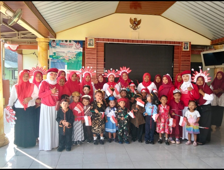 KB PAUD Insan Rabbani: Para peserta didik cilik tampil menggemaskan dengan balutan baju adat dan atribut merah putih, menjadi pusat perhatian dan simbol semangat generasi penerus bangsa.