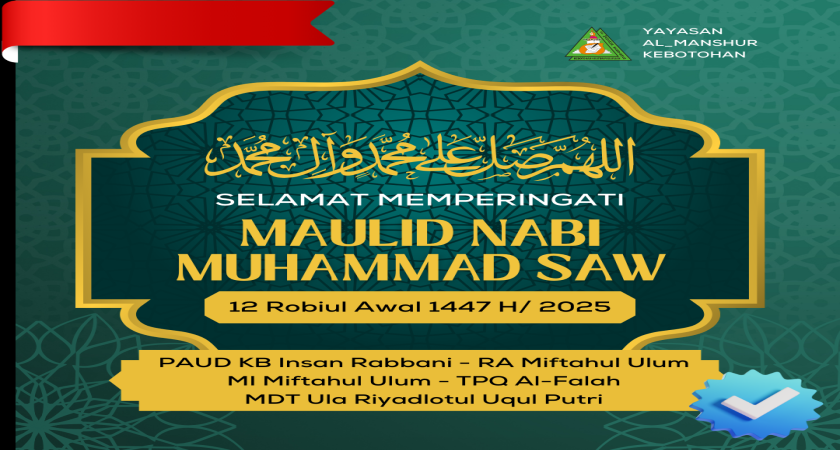 KEBOTOHAN – Dalam rangka memperingati hari kelahiran Nabi Besar Muhammad Shallallahu ‘Alaihi Wasallam, sumber teladan dan rahmat bagi seluruh alam, Yayasan Al-Manshur Kebotohan dengan penuh syukur dan bahagia akan menyelenggarakan Acara Peringatan Maulid Nabi Muhammad SAW 1447 H.